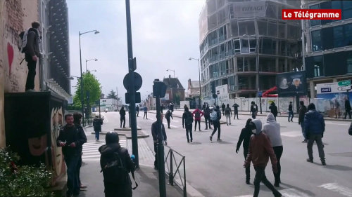 Un policier sort son arme et menace des manifestants à Rennes