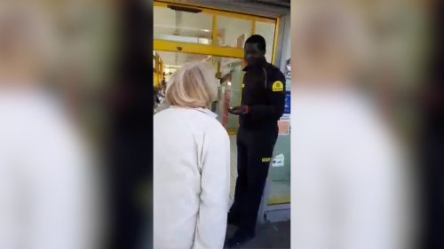 Une vieille femme raciste s'énerve contre un vigile