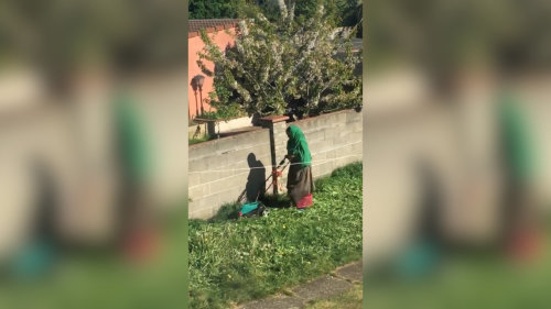 Quand une femme veut tondre la pelouse