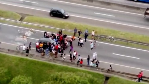 Un automobiliste roule sur des manifestants