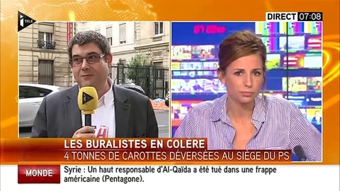 En colère, des buralistes déversent quatre tonnes de carottes devant le siège du Parti Socialiste! TV / Replay · 22 juillet, 2015 1