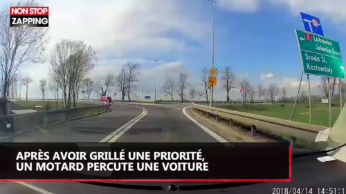 Un motard coupe la route d'une voiture et se fait violemment percuter (Vidéo) TV / Replay · 19 avril, 2018